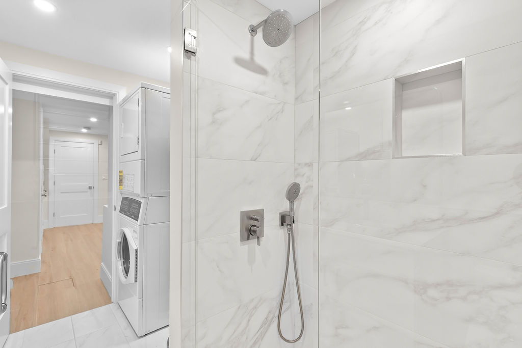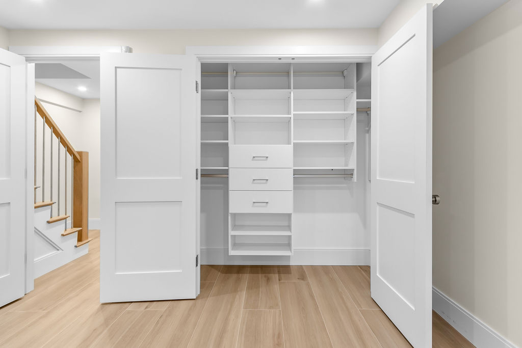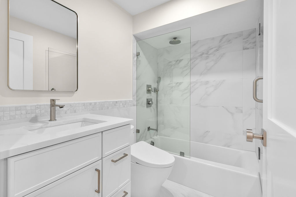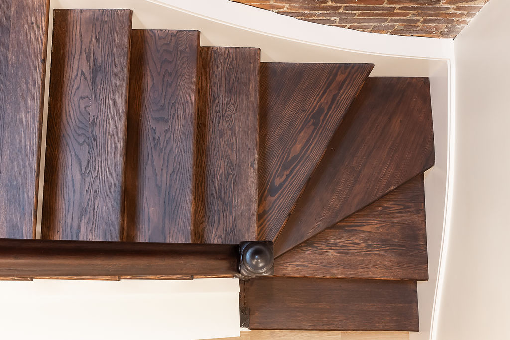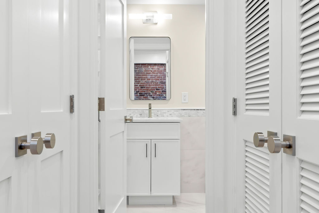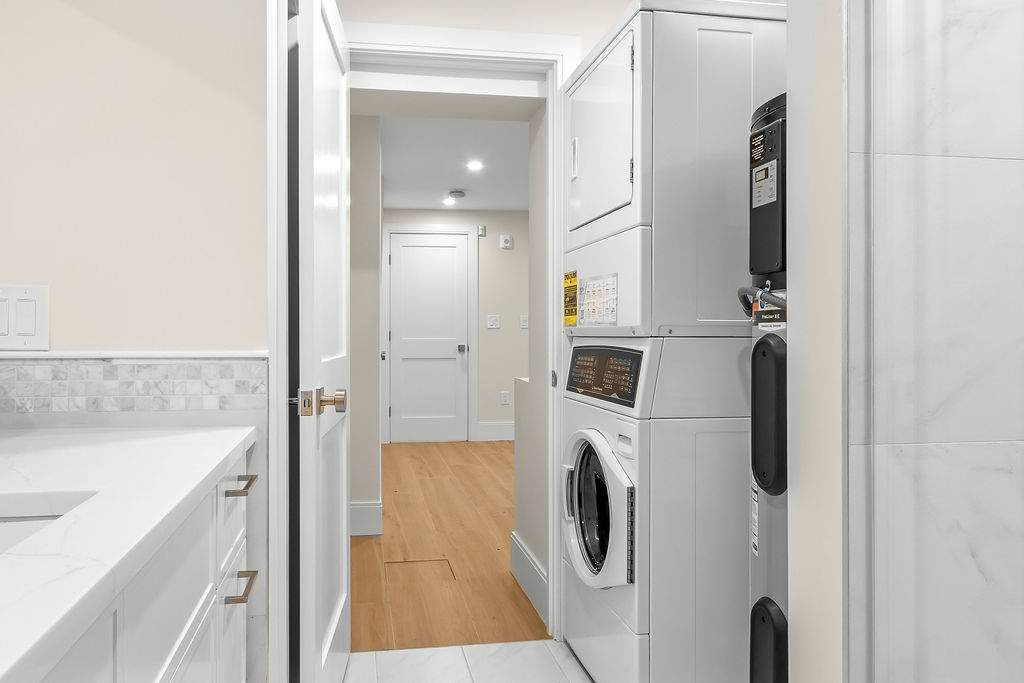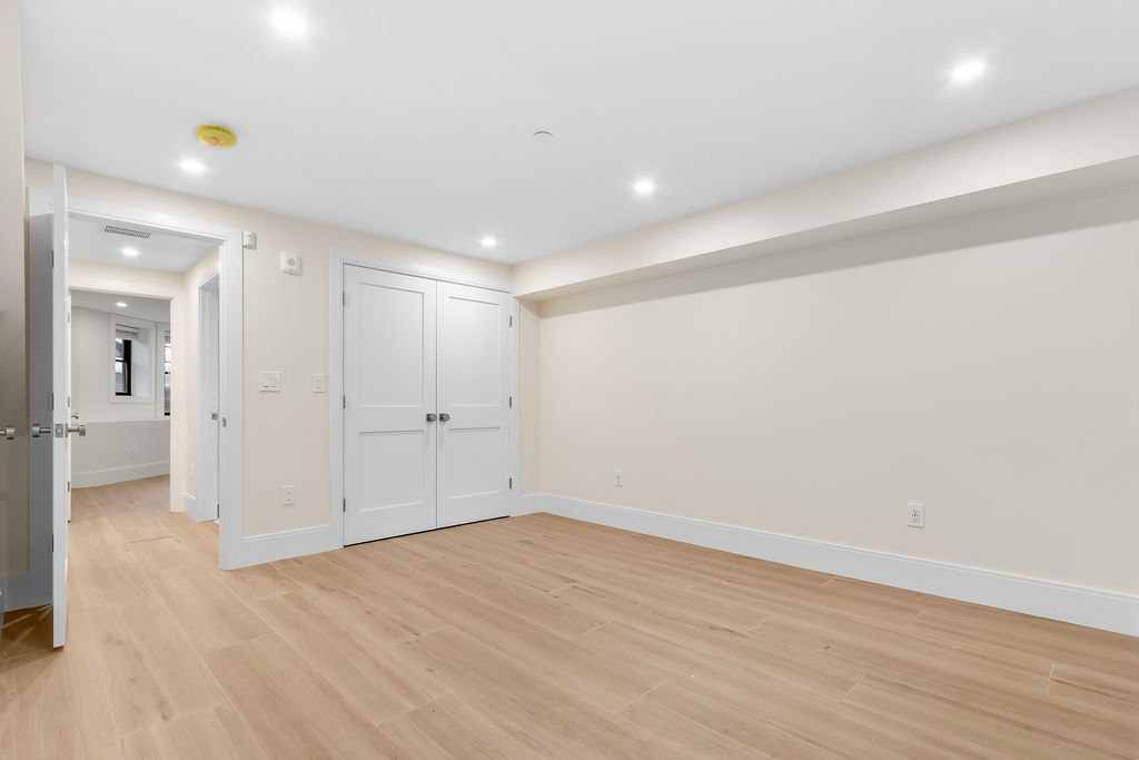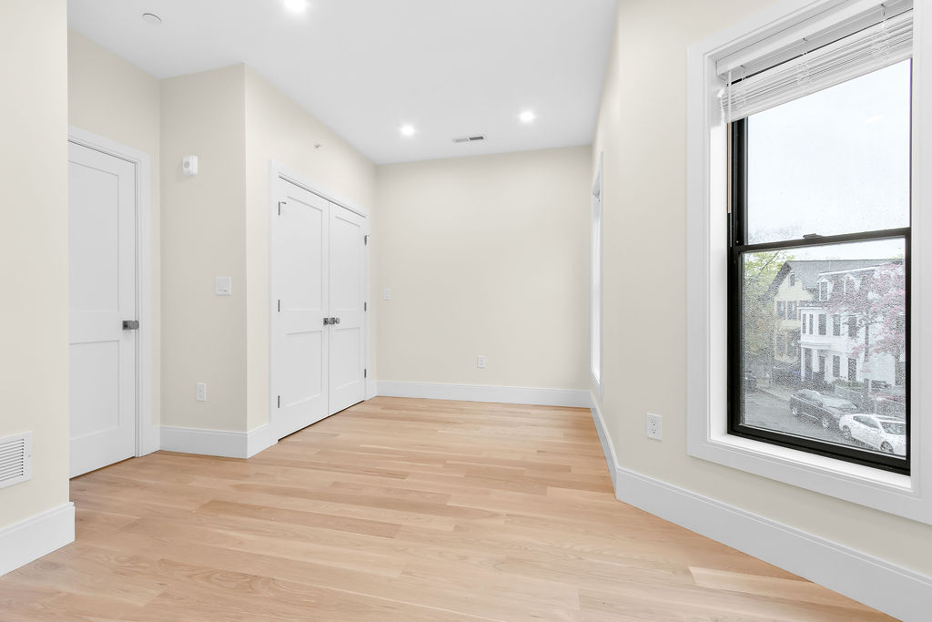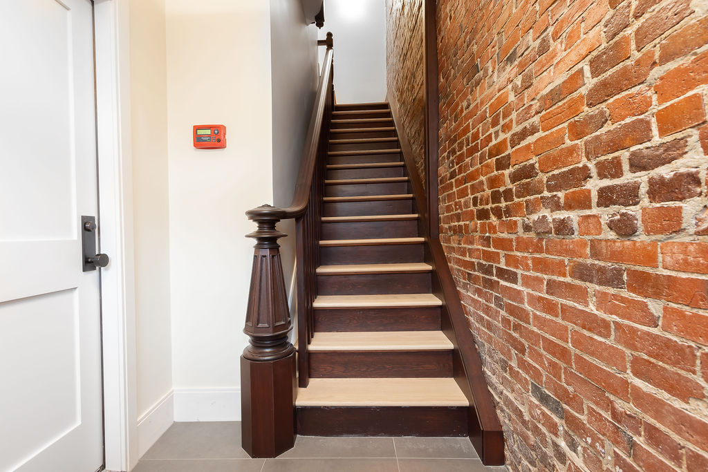 The interior features a bright, open‑concept layout accented by custom wall paneling, refined millwork, and wide‑plank hardwood floors. Within this three‑story multi‑family building, the formal dining area offers an elegant setting for gatherings and entertaining.